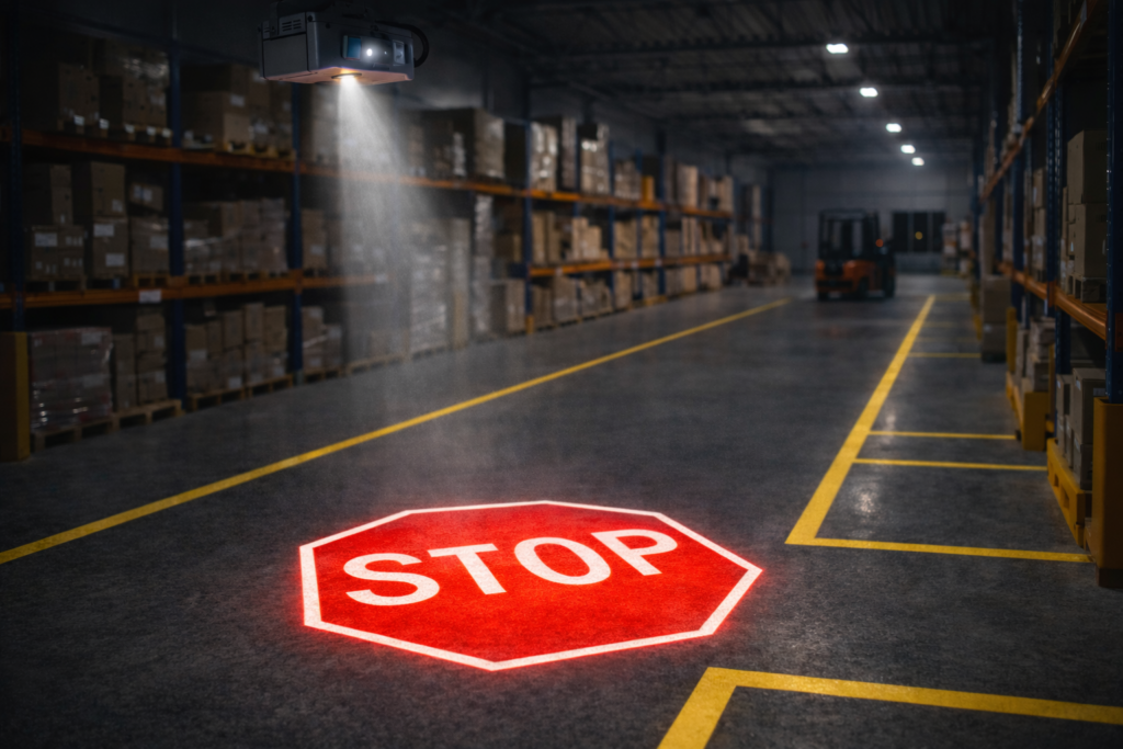 Špeciálne projektory, ktoré ponúkajú trvalé riešenie pre navigačné a bezpečnostné značky. LED projektory premietajú na podlahu značenie podľa svojich požiadaviek, ktoré sa nezničí a zvyšuje bezpečnosť v skladoch, halách alebo výrobných prevádzkach. Vyžaduje si minimálnu údržbu a je ho možné napájať na trvalé svietenie alebo blikanie, prípadne je ho možne napojiť na detektor pohybu resp. časový spínač.